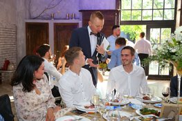 Если Вы не хотите ломать голову над тем, как развлекать многочисленных гостей во время банкета, то Вам необходим профессиональный тамада на свадьбу. Такой человек способен развеселить любую публику! На нашем портале представлены портфолио свадебных ведущих Вашего города. Страница каждого ведущего дополнена контактными данными, описанием услуг, фотографиями с проведённых праздников. Также Вы сможете найти отзывы других молодожёнов о работе того или иного свадебного ведущего.